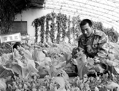 武警黑龙江省大兴安岭地区森林支队三中队驻在大兴安岭深处,年平均气温零下5摄氏度,无霜期仅为92天,冬天吃菜比肉还贵。“每年中队大棚里的新鲜蔬菜能供到老兵退伍,连春节前后都只需买点搭菜!肉一点不用买,自给自足。这全是马日史初的功劳!”中队长马建丰说。