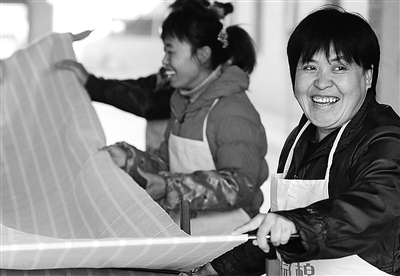 河北省衡水市冀州市田园棉公司员工正在检验生产的新产品,该公司生产的系列棉制品除销往全国各地外,还出口创汇。衡水种棉历史悠久,是全国重要的棉花生产基地,辖区内的冀州市为“全国棉花生产百强县(市)”,该地棉制品加工生产独具特色,“公司+农户”的经营模式深受欢迎。 本报记者 李景录 通讯员 李 丽摄影报道