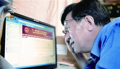 关阔山代表在两会官方网站认真查阅有关资料。