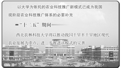 实践证明,以大学为依托的农业科技推广新模式已成为我国现阶段以政府推广机构为主体的农业推广体系的必要补充。“十二五”期间,西北农林科技大学将以推动我国干旱半干旱地区现代农业发展为重点,进一步推进该模式的完善。