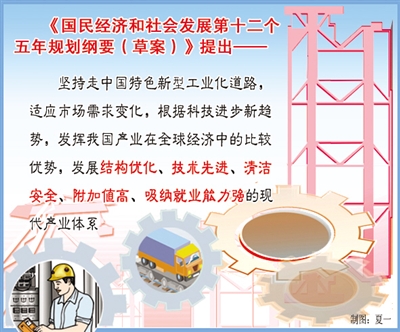 “十二五”规划纲要草案提出,坚持走中国特色新型工业化道路,适应市场需求变化,根据科技进步新趋势,发挥我国产业在全球经济中的比较优势,发展结构优化、技术先进、清洁安全、附加值高、吸纳就业能力强的现代产业体系。