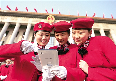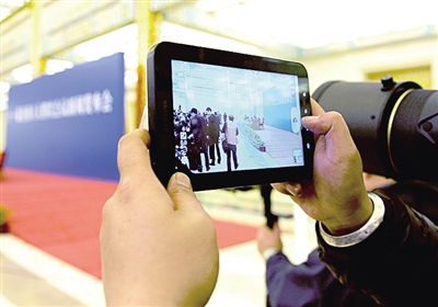两会上,不少代表、委员以及记者、工作人员手中都有智能平板手机,随时观看大会信息,查阅资料,被称为两会随“机”看——