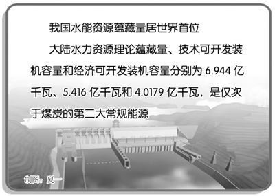 我国河流众多,水能资源蕴藏量居世界首位。大陆水力资源理论蕴藏量、技术可开发装机容量和经济可开发装机容量分别为6.944亿千瓦、5.416亿千瓦和4.0179亿千瓦,是仅次于煤炭的第二大常规能源,也是目前可以进行大规模开发的第一大清洁可再生能源。