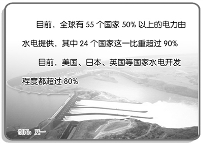 据了解,目前全球有55个国家50%以上的电力由水电提供,其中24个国家这一比重超过90%。美国、日本、英国等国家水电开发程度都超过80%。许多发展中国家大力开发水能资源,如巴西水电开发在电力建设中的比重一直保持在80%以上。