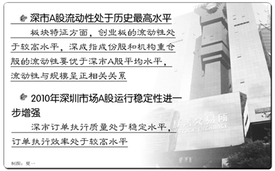 深圳证券交易所日前发布了《2010年度股票市场绩效报告》,从流动性、波动性、有效性和订单执行质量等维度,揭示深圳市场的运行效率与质量,为提高市场运作效率、推动市场健康发展提供了重要的实证依据。