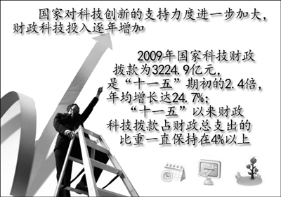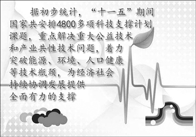 “十一五”以来,我国科技发展进入了重要跃升期,自主创新能力大幅提升,取得了一大批具有国际影响力的标志性重大成果:成功发射神舟系列飞船、嫦娥系列卫星;成功完成载人潜水器3000米海上试验;研制成功最高时速达486.1公里的高速轨道列车;研发推广了新一代可循环钢铁流程工艺、油气田安全高效开采等重点产业发展关键技术;实施了“粮食丰产科技工程”,超级杂交水稻、转基因抗虫棉育种保持世界领先地位;率先研制出戊肝疫苗、甲型流感疫苗,16个新药产品取得新药证书;实施了“科技奥运”和“世博科技”专项行动,成功推动了新能源汽车、太阳能利用、环保技术和半导体照明等一批高新技术及产品的示范应用等。科技对经济社会发展发挥了重要的支撑引领作用。