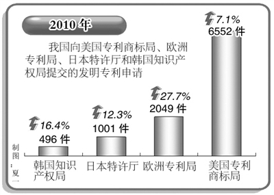 我国向美、欧、日、韩发明专利申请保持平稳快速增长
