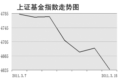 3月15日,受A股市场下挫影响,上证基金指数以4627.21点报收,较上一个交易日下跌了1.28%;深证基金指数以5875.72点报收,较上一个交易日下跌了0.84%。
