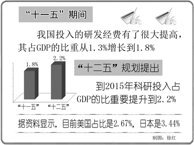 目前,我国各类重点科技计划,其侧重点主要还是在推动高端技术领域的突破与创新上。为避免纯科技的创新竞赛,我们需要提升科技成果的产业化率,着力推进国家创新资源(科研机构和研发资金)与市场、企业对接。“十二五”规划纲要提出,到2015年将科研投入占GDP的比重提升到2.2%,而比增加研发投入更重要的是规划纲要中强调了将深化科技体制改革,完善科技创新的体制机制。