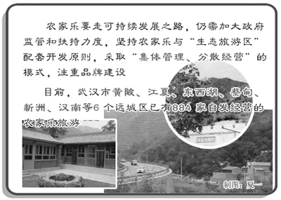 武汉版图面积的95%以上为市郊农村,近年来,依托市郊农村丰富的旅游资源,乡村休闲游产业得到蓬勃发展。以“住农家院、吃农家饭、品农家情、购农家物、干农家活”为主要内容的农家乐旅游,成为都市人新兴的旅游方式。