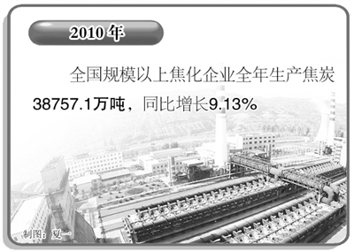 据国家统计局统计,2010年全国规模以上焦化企业全年生产焦炭38757.1万吨,同比增长9.13%。“在2008年经历了近10年中第一次焦炭产量负增长、2009年焦炭产量突破3.55亿吨之后,2010年我国焦化行业再次创造了焦炭产量的历史新高,为国民经济的持续快速发展做出了重要贡献。”中国炼焦行业协会会长黄金干指出。