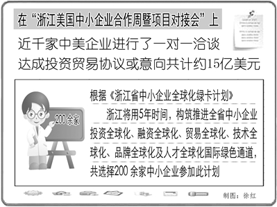 日前,由浙江省政府和全球中小企业联盟共同主办的“浙江美国中小企业合作周暨项目对接会”召开,近千家中美企业进行了一对一洽谈,达成投资贸易协议或意向共计约15亿美元。