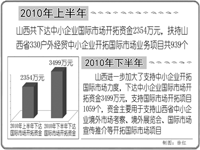 统计显示,2010年,山西省共下达5800余万元资金,大力支持中小企业开拓国际市场。