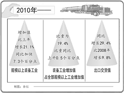 工业和信息化部公布的数据显示,2010年,随着十大产业调整和振兴规划的各项政策措施逐步到位,我国装备工业生产保持高速增长,效益状况好于整体工业,出口也稳步回升。