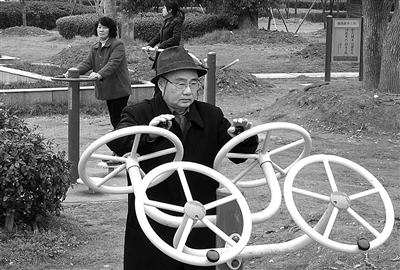 图①:衡阳市苏眼井社区的老人热心参加健身运动,每天早早就出来锻炼身体。
