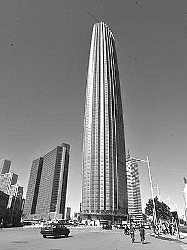 位于天津市大沽路上的津塔——天津环球金融中心,是一座高达336.9米、风帆造型的写字楼。它是天津目前最高的建筑,也是钢板剪力墙结构的世界第一高楼。