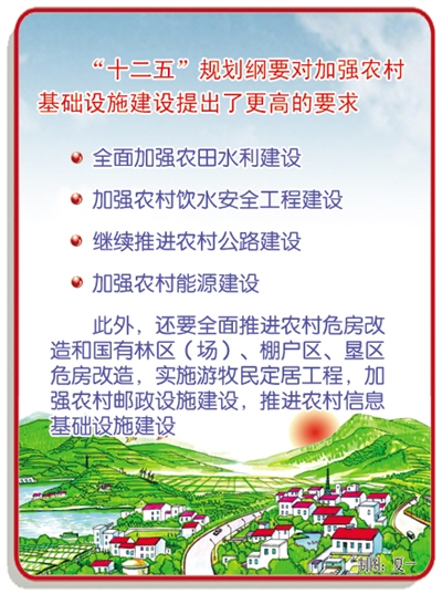 “十二五”规划纲要明确提出,按照推进城乡经济社会发展一体化的要求,搞好社会主义新农村建设规划,加强农村基础设施建设和公共服务,推进农村环境综合整治。国家发改委宏观经济研究院副院长马晓河在接受记者采访时说,这部分内容强调的就是要进一步改善农村生产生活条件,随着“十二五”规划纲要的贯彻落实,我国广大农村生产生活条件将得到根本性的改观,亿万农民生活得将更加幸福。