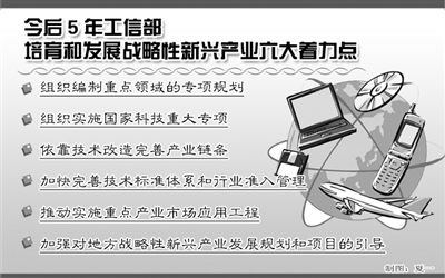 新华社北京3月26日电 (记者郑晓奕) 工业和信息化部副部长苏波26日透露,今后5年工信部将围绕编制专项规划、实施重大科技专项、完善产业链条、完善技术标准和行业准入、推动市场化应用、引导地方规划等六大方面,培育和发展战略性新兴产业。