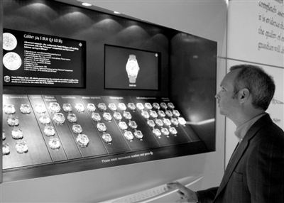 第39届巴塞尔国际钟表珠宝展于24日至31日对公众开放。作为世界最大规模同类博览会,巴塞尔国际钟表珠宝展向来被视为全球奢侈品市场的风向标。图为一名观众观看百达翡丽钟表公司展品。 新华社发