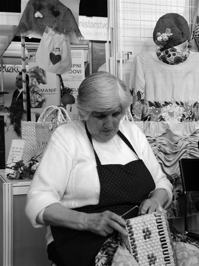第四届克罗地亚国际旅游博览会日前在克罗地亚萨格勒布展览中心开幕。这次博览会吸引了来自近30个国家或地区的旅游部门参展。图为克罗地亚民间艺人在博览会现场表演传统手工艺。 新华社发