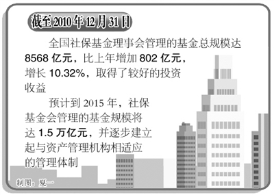 本报讯 记者贺浪莎从全国社会保障基金理事会第四届理事大会第一次会议上获悉:截至2010年12月31日,全国社保基金理事会管理的基金总规模达8568亿元,比上年增加802亿元,增长10.32%。