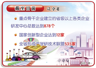 今年以来,辽宁加快了高新技术产业基地研发中心和孵化器建设,积极构建以企业为主体、市场为导向,产学研结合的科技创新体系。目前,辽宁省重点骨干企业建立的省级以上各类企业研发中心总数达到878个,国家创新型企业达到12家,全省90%以上的大中型工业企业与省内外科研机构和大专院校建立了技术合作关系,形成产学研技术联盟535家,构建起有力的技术支撑体系,不断推动先进制造业向价值链高端延伸。