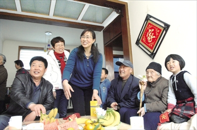 图1 无棣县无棣街道办事处馨安小区,90岁的宋玉环老人(右二)刚刚搬入新居,一家人开心地与邻居们互祝乔迁之喜。“十一五”时期,该县大力推进保障性安居工程,通过实施经济适用房建设、廉租房建设、回购商品房作为廉租房等住房保障工程,使1000多户低收入居民的住房问题得到彻底解决。“十二五”开局之年,该县住房保障工程建设力度将进一步加大。