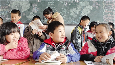 图5 无棣县第二实验学校老师在辅导留守儿童进行课外阅读。该县积极为留守儿童搭建平台,开展系列关爱活动。