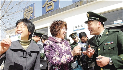 图6 无棣县公安局埕口边防派出所民警向群众发放“警民联系卡”。无棣县坚持警务保障民生,促进和谐稳定的思路,使群众的安全感和满意度不断上升。