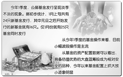 今年1季度,公募基金发行呈现淡季不淡的现象。据初步统计,1月上旬共有24只新基金发行,其中元旦之后开始发行的新基金就有16只。仅1月份就有25只基金同时发行。