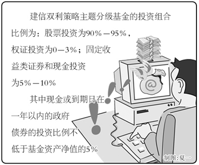 本报讯 建信双利策略主题分级基金正在建行、工行、招行等银行及各大券商代销。作为分级型股票基金,该基金包含了基础份额、稳健份额和进取份额,其中“稳健份额”的约定年基准收益率为“一年期同期银行定期存款利率+3.5%”,适合希望能通过运用避险机制享受到稳定的收益、风险收益偏好较低的投资者。 (郭晓婧)