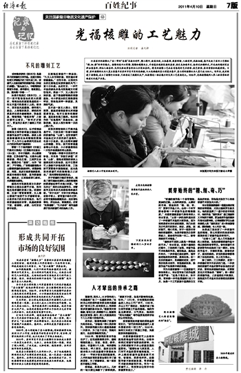 因核雕而走向富裕的须培金没有忘记,“技艺的传承是核雕艺人首先要做好的一项工作”。2005年,她和丈夫成立了核雕工作室,免费教授学徒雕刻技法。