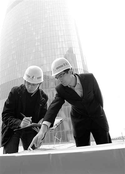 上图 广东省质监部门技术人员正在对西塔重点建设工程的产品进行检验。