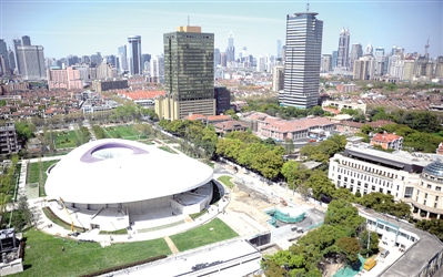 位于上海市中心的即将投入使用的上海文化广场剧场(4月11日摄)。 目前,上海文化广场剧场已基本建成,预计7月正式使用。上海文化广场剧场建筑面积为6.5万平方米,其中5.7万平方米建在地下。 新华社发
