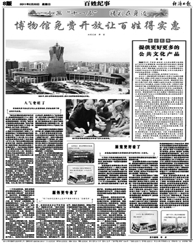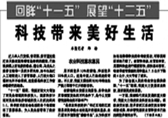经济日报从去年底开始,陆续刊发了“辉煌十一五”、“如画‘十一五’ 精彩在身边”、“回眸‘十一五’ 展望‘十二五’”、“‘十一五’重大科技成就巡礼”、“展望‘十二五’”等系列专题报道,为我国“十二五”时期各项工作开好局、起好步提供了强有力的舆论支持。