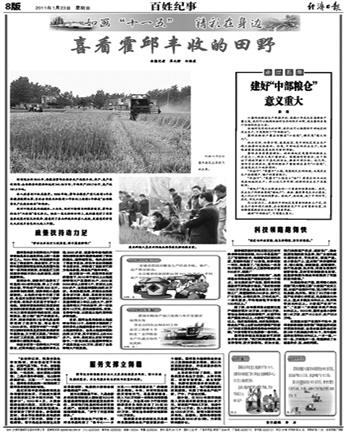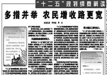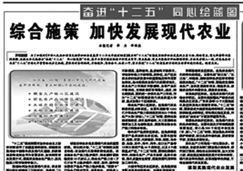 《亿万农民得到更多实惠》一文提到,山西省平遥县东泉镇遮胡村的霍春明逢人便说“种地不缴税了,孩子上学不缴学费了,看病能报销了,还搞些养殖,一年下来收入不少。村里的变化也大,路通了,水清了,房子翻新了,环境也整洁了。”朴素的话语,道出了亿万农民对强农惠农政策的感恩之心。《推动中国制造向高端迈进》一文以“十一五”时期取得的成绩为基础,预测到“十二五”末,我国将实现数控系统、功能部件、工具等与主机的配套和协同发展,掌握一批主机、数控系统及关键功能部件的核心技术,形成重大、精密、成套装备的自主开发能力,总体技术水平进入国际先进行列,令人鼓舞。