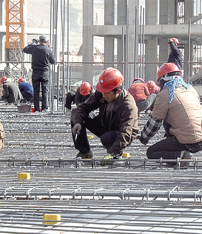 3月31日,承担玉树民族中学重建任务的中铁二局建设队伍正在施工。 祁国彪摄