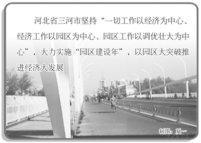 树立“富集发展要素,打造局部优势”的理念,在园区经济上求突破。坚持“一切工作以经济为中心、经济工作以园区为中心、园区工作以调优壮大为中心”,大力实施“园区建设年”,以园区大突破推进经济大发展。三河市采取了创新园区功能、构建要素支撑、完善运行机制三大措施,对燕郊经济技术开发区、潮白河休闲健康产业区、福山经济新区重新进行功能定位,着眼于对接京津、外联内通,促进园区实现错位发展,实现了区域资源有效利用,形成优势互补。