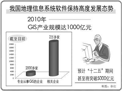 作为战略性新兴产业的地理信息产业,必将通过凝聚科技资源来引领产业的发展。据介绍,2010年地理信息产业规模已达到1000亿元,并将以25%以上的速度增长。据估计,到“十二五”末期,这一产业产值将达到5000亿元,带动就业400万人至500万人,同时带动的其他相关配套规模还会更大。刘永说,国家“十二五”重大专项支持的就是云GIS的一部分,将来要为全社会免费提供GIS遥感技术超市,预计项目投资在3000万元到5000万元。