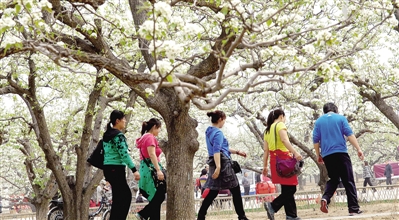 4月13日,北京房山琉璃河镇第四届梨花文化周开幕,大批游客前来观赏梨花。 本报记者 张 欣摄