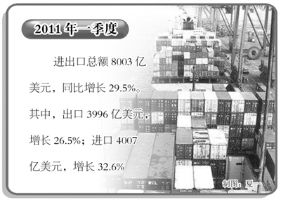 2011年一季度,农村居民人均现金收入2187元,比上年同期增长20.6%,剔除价格因素,实际增长14.3%,实际增速同比加快5.1个百分点;全国城镇居民人均可支配收入5963元,比上年同期增长12.3%,剔除价格因素,实际增长7.1%,实际增速同比回落0.4个百分点。农村居民收入快速增长,城镇居民收入稳步增长,城乡居民收入差距在增长中缩小,这些都成为一季度国民经济的一大亮点。