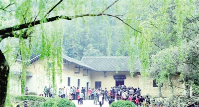 清晨,太阳刚刚升起,毛泽东同志故居前的南岸塘四周小路上就排起了长长的队伍,而山路上驶向这小山村的车队更是一眼望不到头。