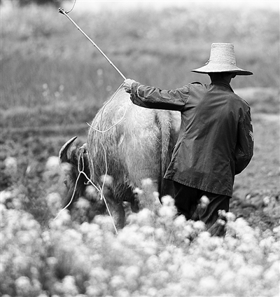 右图 随着气温逐渐回升,各地抓住天气晴好的有利时机,开始整地耕地,投入春播生产。图为江西省新建县石埠乡上莘村一位村民在耕地。