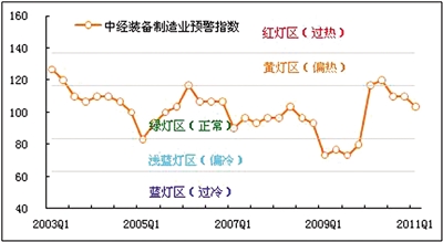 预警:2011年一季度,中经装备制造业预警指数为103.3点,比上季度回落6.7点,继续在“绿灯区”偏上位置运行,表明行业运行继续维持在正常偏暖的状态。