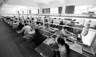 上图:4月11日,工人在微型企业孵化园的一家电子生产企业里工作。重庆市万州区在2011年将发展3000家微型企业,这些微型企业将解决上万名三峡库区移民的就业问题。 新华社记者 陈 诚摄