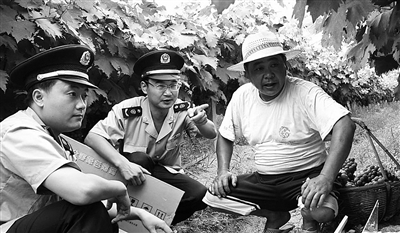 图1:工商管理人员正在指导农民依托地理标志证明商标进行农业生产。 丁青青摄