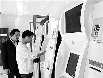 4月18日,市民在北京市西城区综合行政服务中心利用自助行政服务系统办理业务。当日,西城区综合行政服务中心启用,30多个政府职能部门进驻中心,集中了涉及行政审批、社会管理、公共服务等方面的300余项办理事项。 新华社记者 张 旭摄