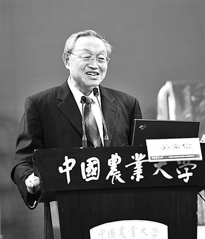 2010年,吴常信在中国农业大学研究生开学典礼上欢迎新同学。