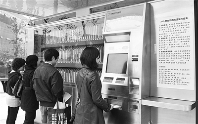 4月23日,市民在无锡街头的自助图书馆借书。当日是“世界读书日”,江苏无锡市首台“24小时城市街区自助图书馆”正式对外开放。 潘正光摄(新华社发)