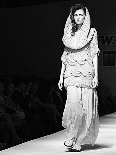 日前,在哈萨克斯坦阿拉木图举行的时装周闭幕式上,一名模特展示哈萨克斯坦设计师萨尔塔的作品。时装周期间,来自美国、意大利、法国、格鲁吉亚和哈萨克斯坦等国的25名设计师展示了作品。 新华社发